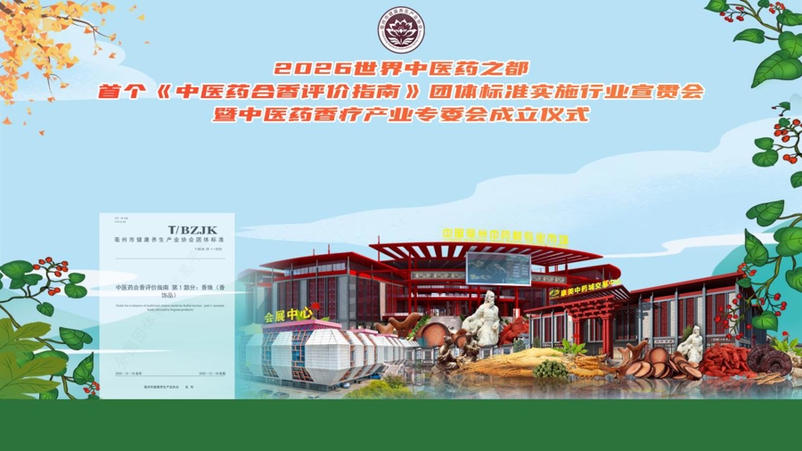 1月30日,“世界中医药之都”安徽亳州召开首个《中医药合香评价指南》团体标准实施行业宣贯会,同步成立亳州市健康养生产业协会中医药香疗产业专委会。