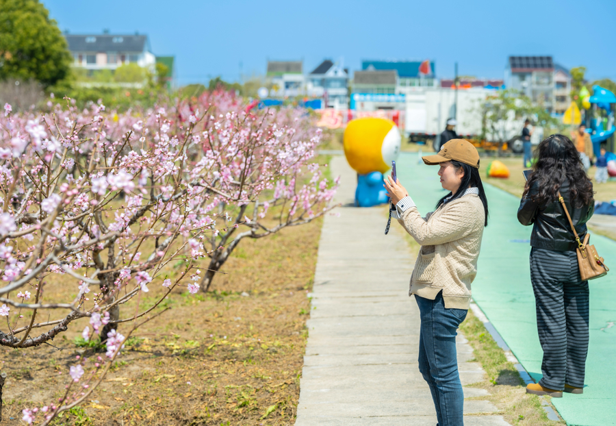 市民旅客散步花间步说念,容身不雅赏,拍照打卡,用镜头纪录春日好意思好。当今,园内桃花赶巧最好不雅赏期,瞻望花期可捏续至四月中旬。