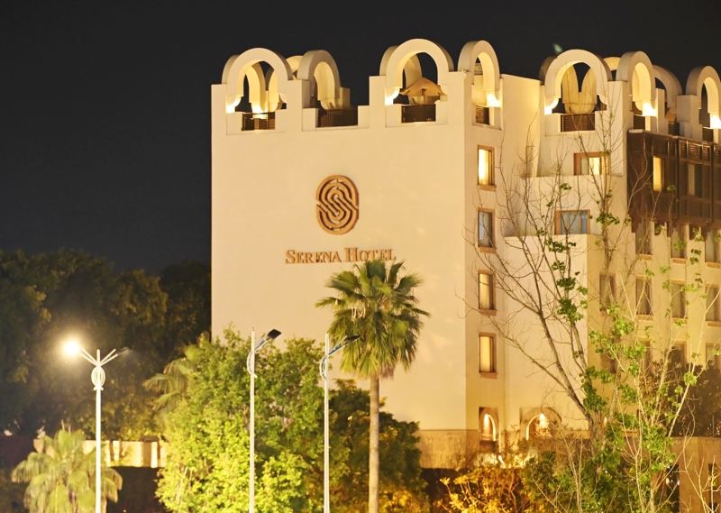 这是4月11日晚在巴基斯坦皆门伊斯兰堡拍摄的塞雷纳货仓外景。